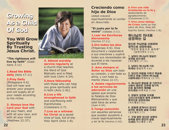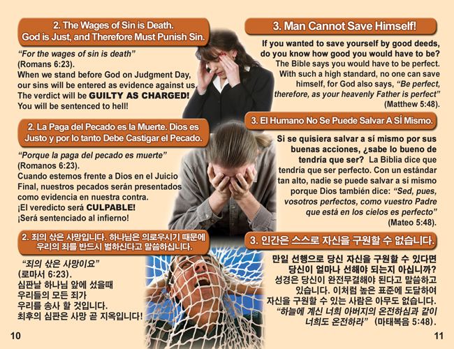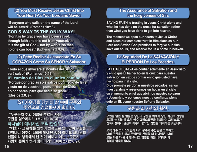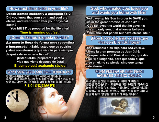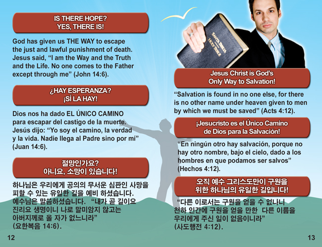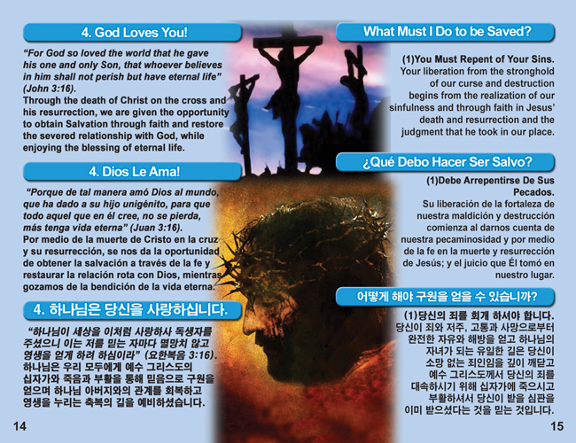 English, Spanish & Korean GO! Gospel Bible Tracts - 4 Covers, 24 Pages
